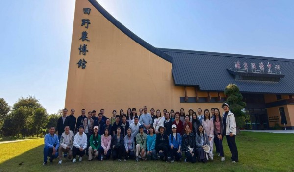 随后,老师们转赴田野农博馆参观。展厅采用多媒体、宣传片、展板、文字介绍等多种形式,展示了“农村改革的一面旗帜”“新农村建设的典范”官桥村八组40多年来从贫困村建设成为现代化小城镇的沧桑巨变,呈现了其从解决温饱问题到实现共同富裕的改革发展历程。实物区以怀旧风格展出了上个世纪七八十年代的农耕用具,如耙、油桶、竹箕等,配以老式居民房、集体劳动情景的照片,充满农家生活气息。此外,还通过传统展示与声光电技术相结合的方式,展现了官桥村八组通过建立集生产、经营、科研、开发于一体的田野集团推进转型升级实现多元发展的丰富内容及未来蓝图。参观田野农博馆,使老师们深入了解了官桥村八组的奋斗历史和发展成就,学习了全体村民艰苦奋斗、改天换地的拼搏精神,感受到“神农”传人推进绿色转型实现乡村振兴的坚定信念。
