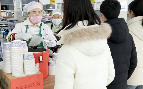 正午时分,学校食堂早已备妥专属暖意——免费供应的姜丝可乐冒着氤氲热气,一杯杯递到师生手中,驱散了冬日的严寒。同时,食堂精心烹制的各色佳肴鲜香扑鼻,热气腾腾的饭菜裹挟着关怀,让每位师生在寒冬里,都能品尝到舌尖上的温暖与校园的温情。