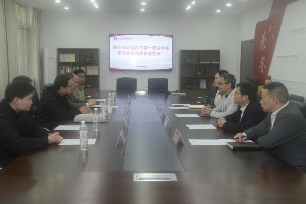2026年4月22日上午,武汉市第一商业学校党委委员、副校长徐俊一行莅临武汉市财政学校,开展食堂管理工作参观交流。武汉市财政学校党委副书记、校长敖景祥,党委委员、副校长汪正林及相关部门负责人陪同交流。