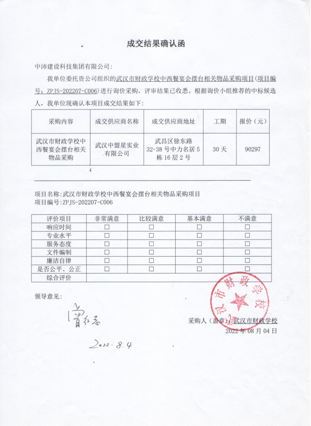 中西餐宴会摆台相关物品采购成交结果公告